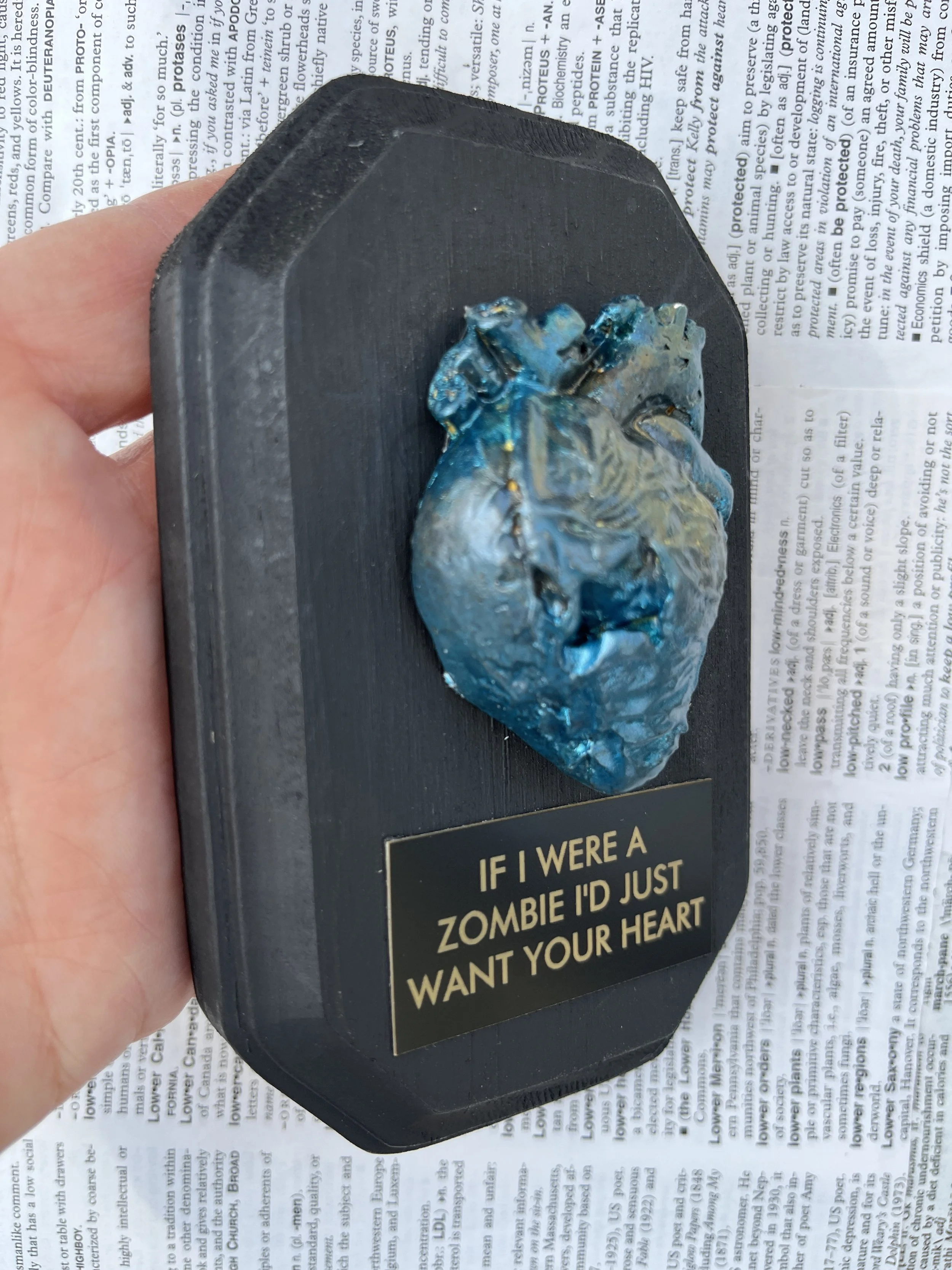 Our resin and wood anatomical heart plaque is stunning, featuring lovely, unique coloring, a subtle shine, and an elegant wood finish. And you’d be surprised at the number of uses you can find for it. Gift for a medical student, teacher, nurse, or doctor? Check. Unique (and slightly creepy) Valentine’s Day decor? Check. Sophisticated Halloween wall art? Check.