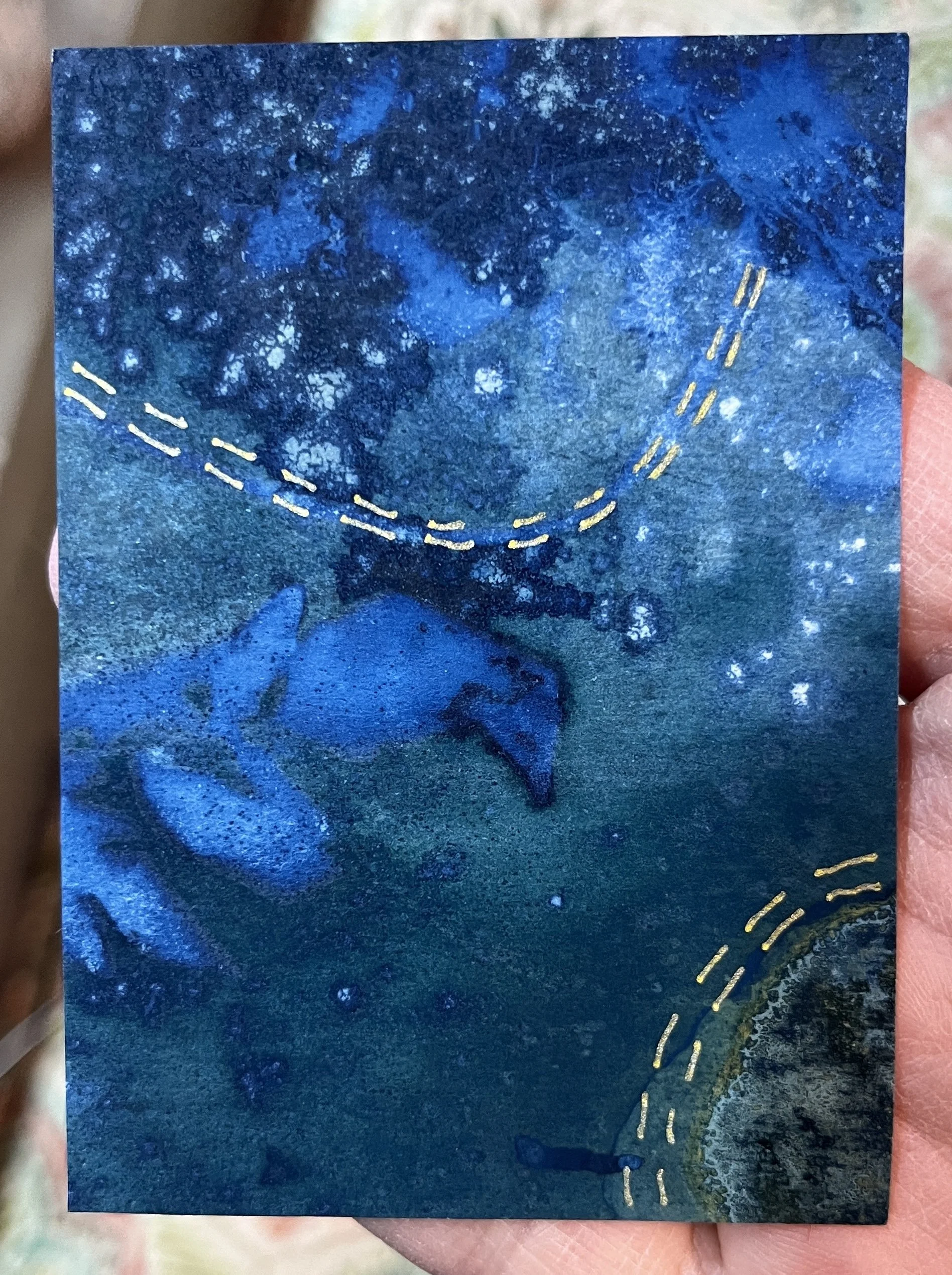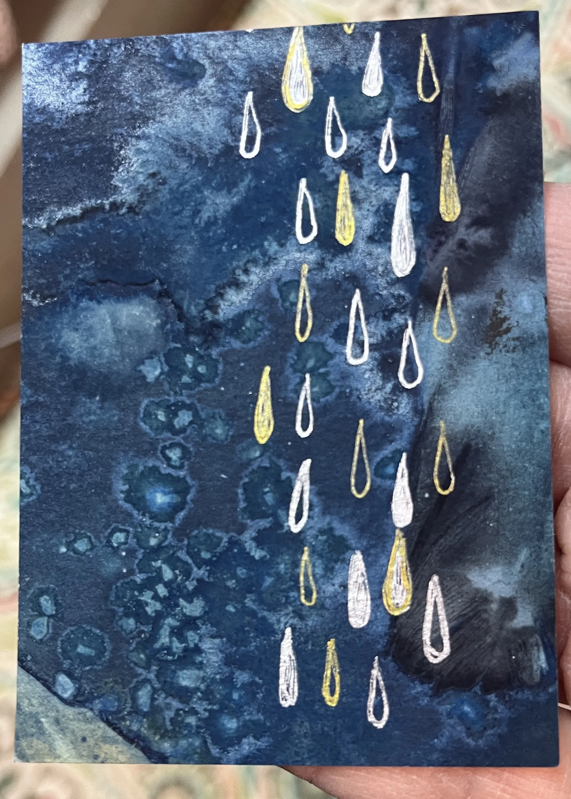 ATC (Artist Trading Cards) are a fun way for me to use the supplies and paper scraps I have around the house and studio. When I am not sure what to make or how to solve a problem, I can sit and open a box, sort and make an ATC. Small, simple, and approachable. Science data encourages us to create things no matter how small to build our neural pathways. Noted!