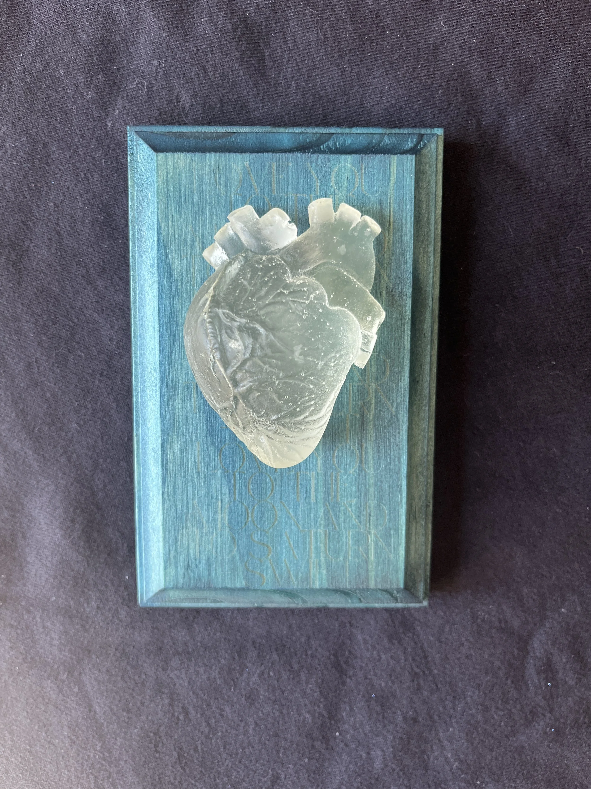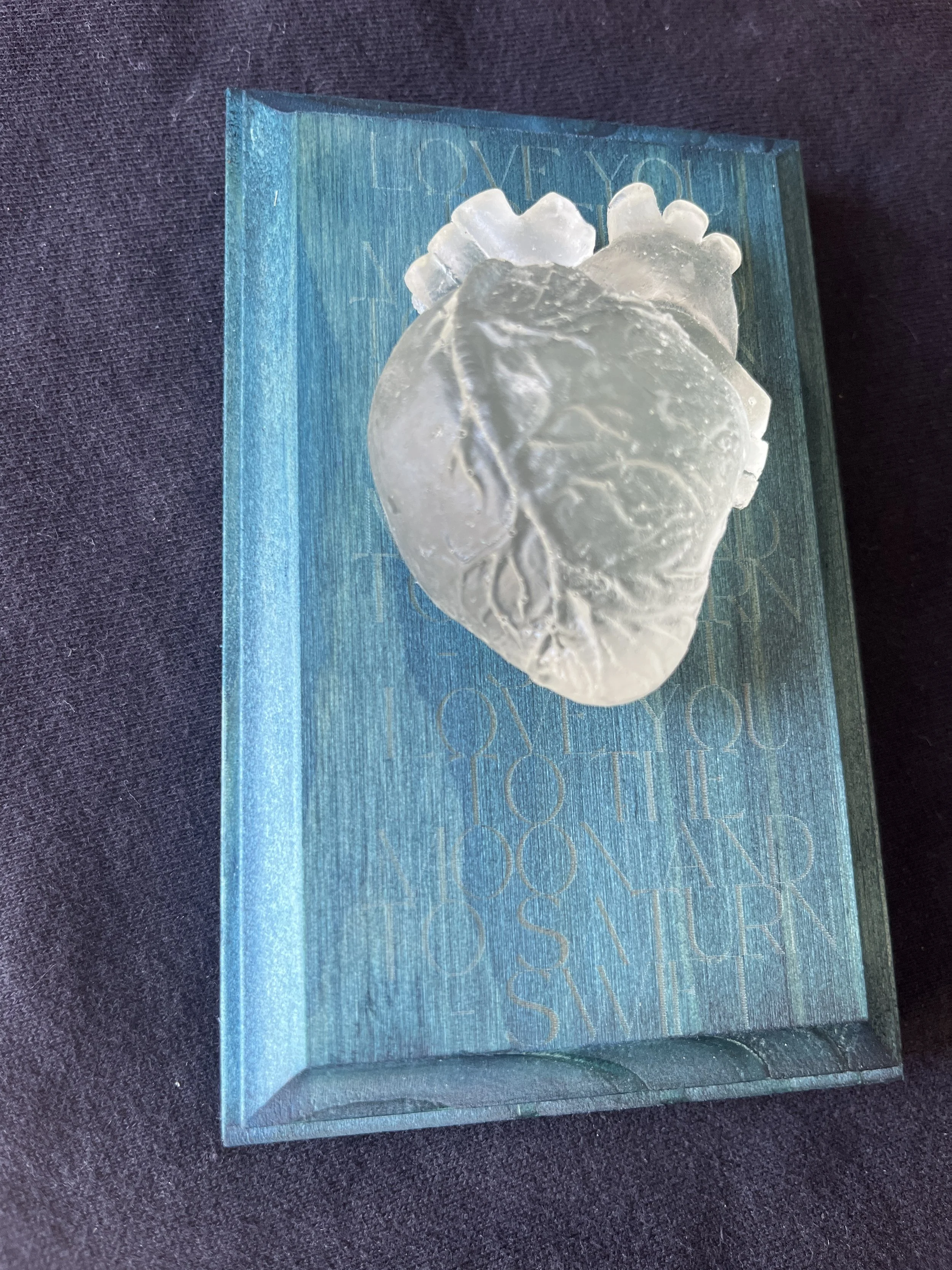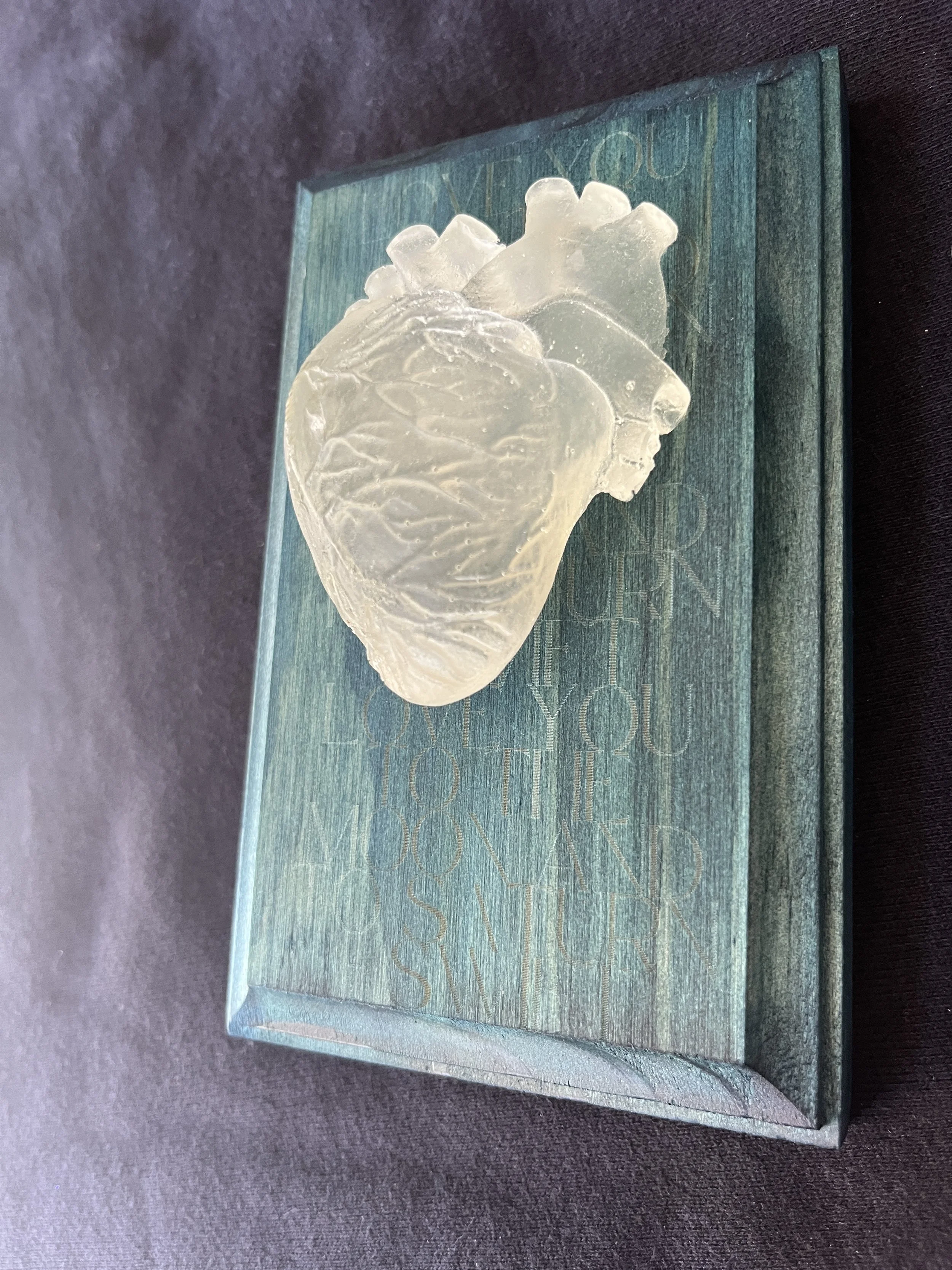 A round, speckled purple wooden moon elegantly showcases a mythical creature of the night: the elusive Jackalope. The craftsmanship of the moon's surface captures the enchanting essence of twilight, while the Jackalope, with its majestic antlers and whimsical presence, adds an air of mystery and folklore to this captivating piece.