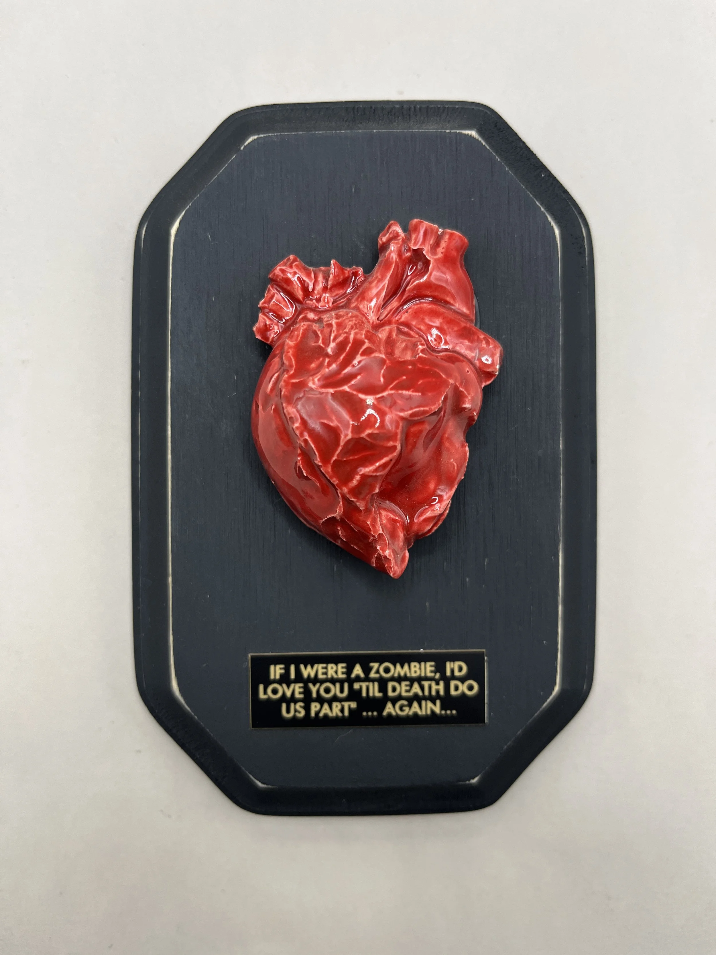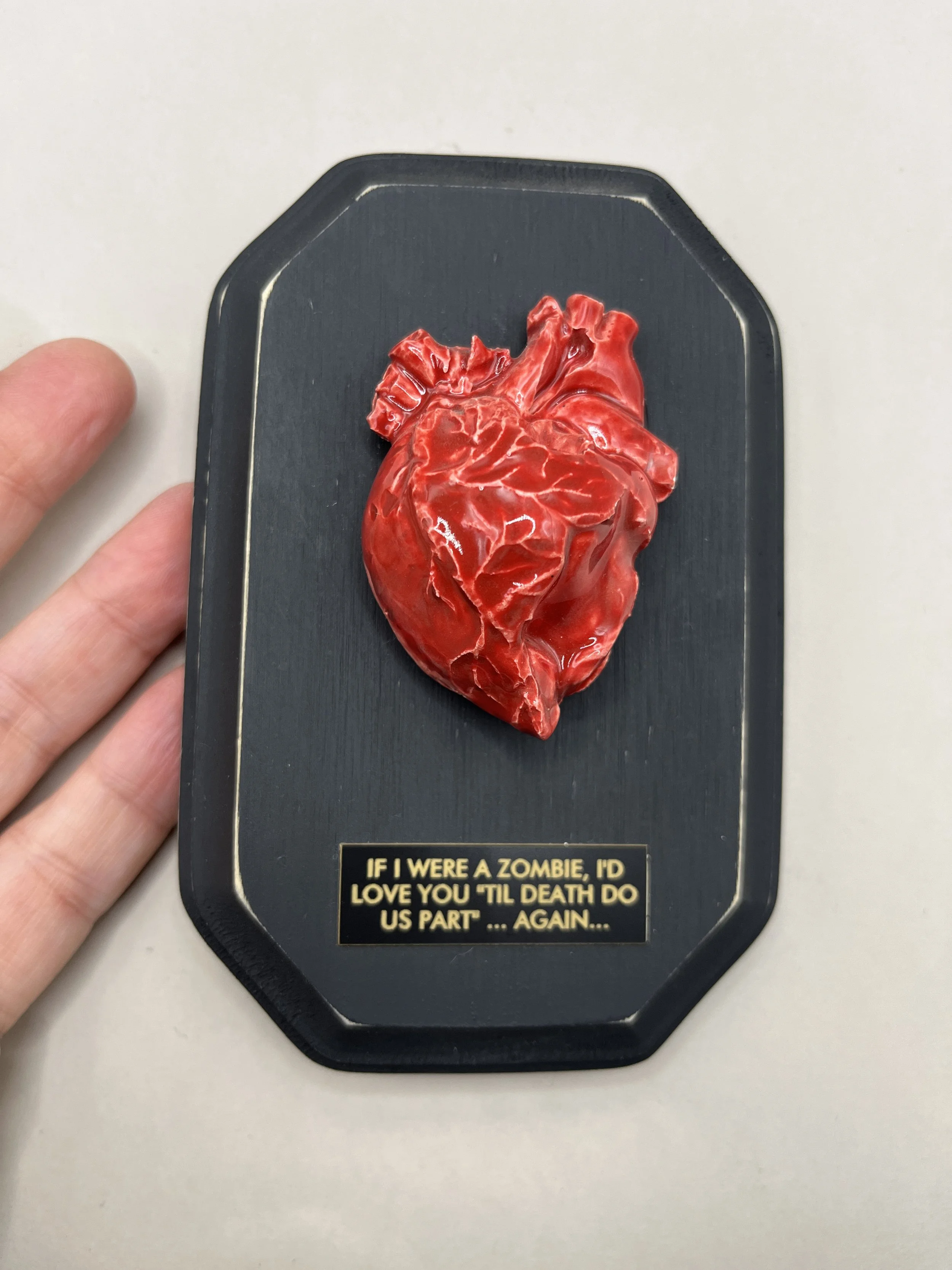 Black Zombie Heart Art Trophy on Black Wood Plaque